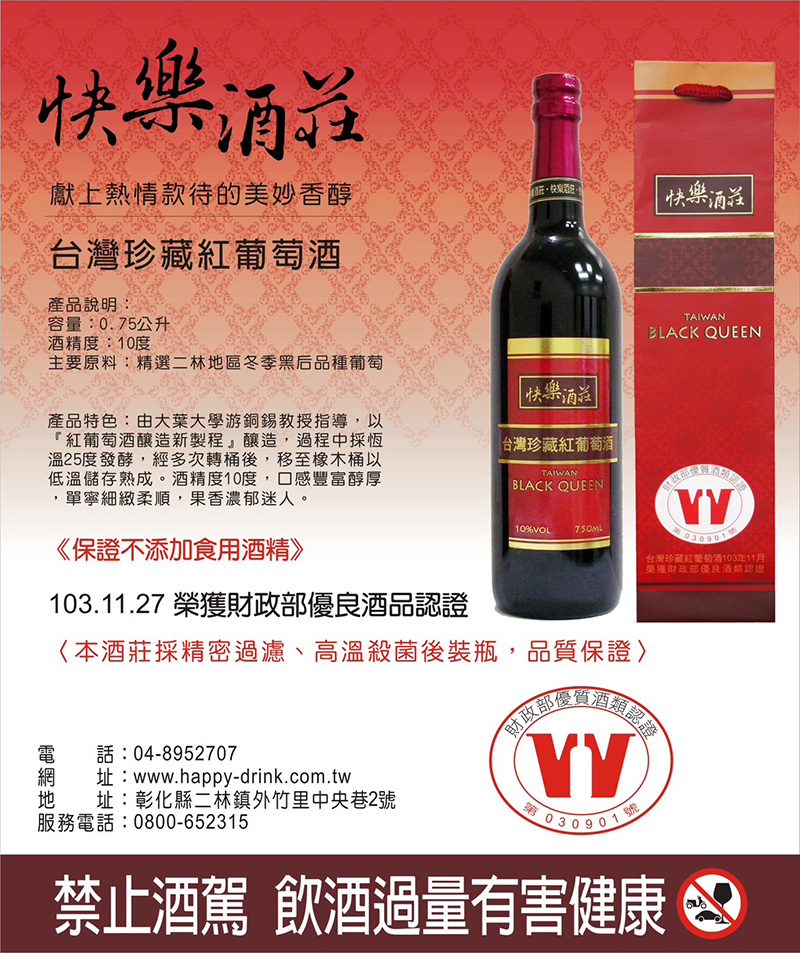 主要原料:精選二林地區冬季黑后品種葡萄
